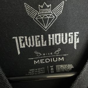 Jewel House 82 Mens T Shirt Black Graphic Tee Medium Short Sleeve Crew Neck Very Good Condition