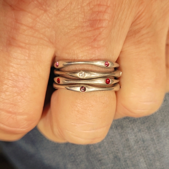 Size 9 JK stacking rings, crystal, amethyst, ruby and rose. EUC smoke free home