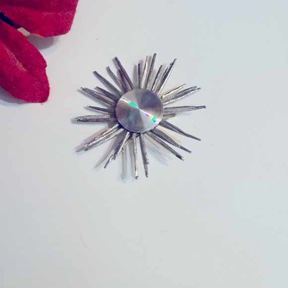Blast from the past backed to the 90s. Silver spiked pin with a solid silver plated center.