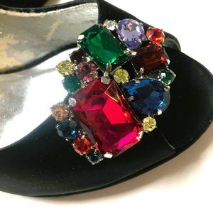 Jewel Tone Rhinestone Black Open Toe Pumps Stiletto Heels Shoes Mad Men Style