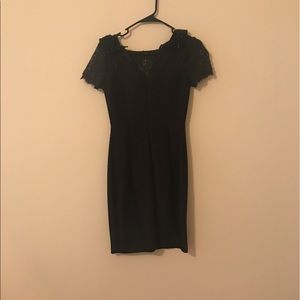 A gorgeous black dress for special occasions. Heavy, high-quality jewel collar. Some stretch but great structure -- form fitting and flattering. And the prettiest lace detailing up top. Worn once.