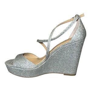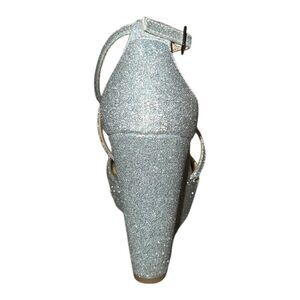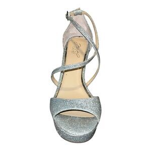 Jewel Badgley Mischka Averie Evening Sandal Heels Silver Glitter 8.5M New