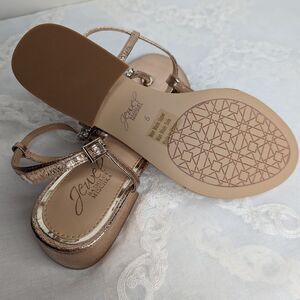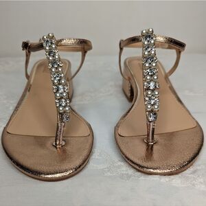 Jewel Badgley Mischka Dasha Block Heel Thong Sandals Roes Gold Champagne Y2K