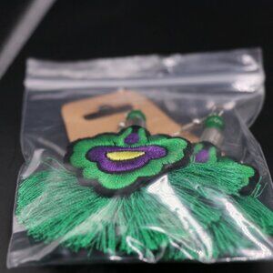 JewelNaush Embroidered Floral Earrings with Fan Fringe