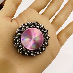 Jewelarama Brooch Prism Round Pinkish Reflective Dark Silver Tone. In very nice Condition. Please preview all Pictures for Condition and/or measurements. If you have any questions please ask prior the purchase. Will be shipped with care.