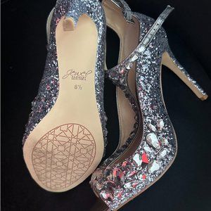 Jeweled Badgley Mischka Silver Heels
