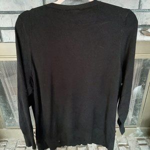 Lovely black sweater with light pink and silver/clear jewels. From Torrid, this sweater is super comfy and in great condition. Can be dressed up or down.