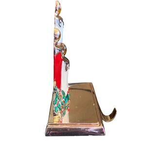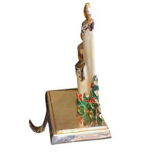 Enameled Jeweled Christmas Candle Mistletoe HEAVY Metal Stocking Hanger Holder