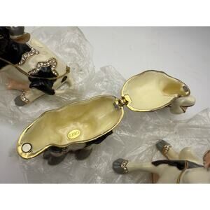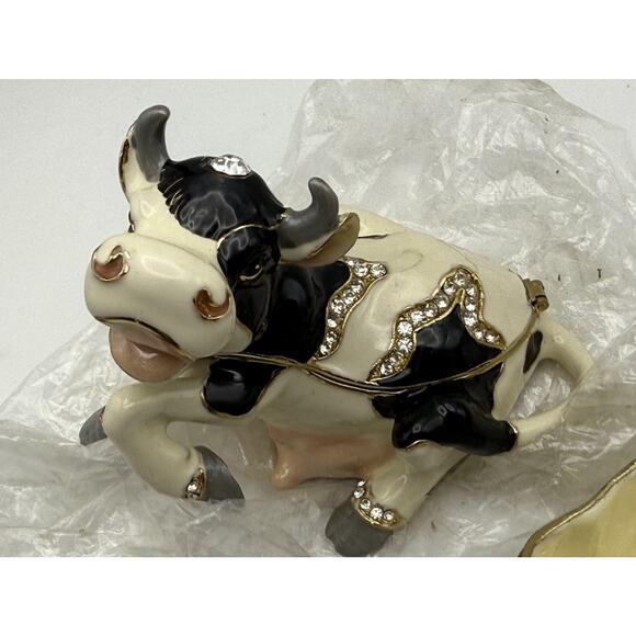 Jeweled Enameled Pewter White Cow Hinged Trinket Jewelry Box by Terra Cottage