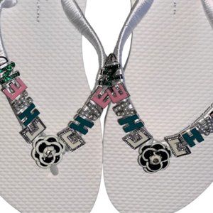 Step into a world of enchantment and elegance with our mesmerizing creation, the "Jeweled Flip Flops." These exquisite sandals are not just footwear; they are a harmonious fusion of beauty, sparkle, and comfort, designed to make every step a dazzling journey.