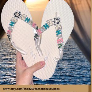 Jeweled Flip Flops, Bling Shoes, Rhinestone/Crystal Sandals, Bling Shoes Sz 6