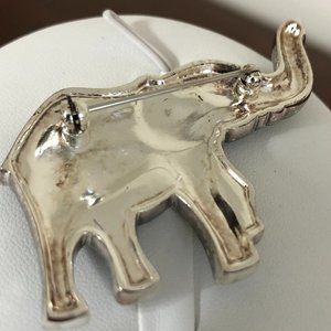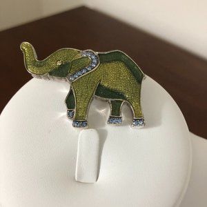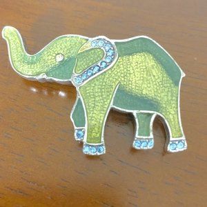-This lovely brooch features a two-toned green elephant with rhinestones in earns and feet. Silver toned pin backing.
