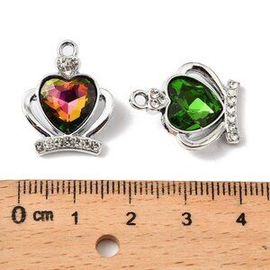 Jeweled Heart Rhinestone Crown Charm on Silver