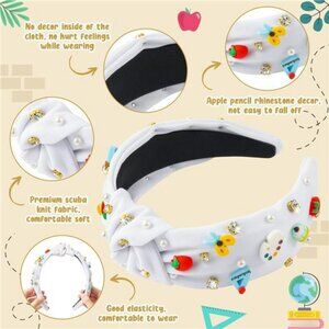 GLAMOROUS STYLE: Make a dazzling statement with our teacher jeweled knotted headband. Quality fabrics, cute apple, pencil, ruler, scissors, drawing board and sparkling rhinestone crystal decor, add a touch of unique and sparkle to your hair accessories! This is the ideal choice to enhance your look, whether it's for a casual outing or a formal event.