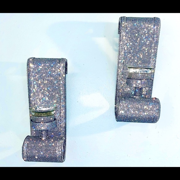 An Original Piece Designed By Lovez DeCor Swarovski White Crystal Rhinestones Wall Sconces Candle Holders with Candles..Beautiful Gift on Any Day