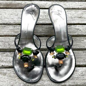 Gorgeous! 💯Authentic Giuseppe Zanotti Jeweled Slides Sandals Heels. Size 7.5B with a 3" Heel. Leather. Made in Italy. All Jewel Stones Intact. Excellent Condition. Comes with Original Box and Giuseppe Zanotti Satin Dust Bag with Chrome-Tipped Drawstrings. Purchased at Neiman Marcus.