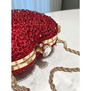 ❤️💎 Jeweled Sparkling Rhinestone Red Heart Shaped Chain Clutch Purse Bag NEW