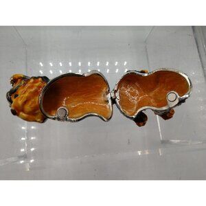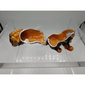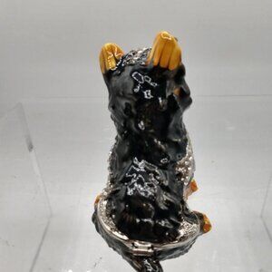 Every once in a while, a keepsake emerges that tells its own story. This jeweled terrier trinket box, adorned with meticulous detail, opens to reveal a hidden space, perfect for tiny treasures. A charming gift or a delightful addition to any collection, this piece blends elegance and whimsy seamlessly.