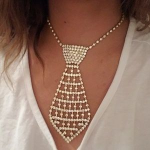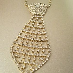 Jeweled tie choker length necklace on gold chain. Worn for new years once. Super gorgeous and sturdy. I paid $50 for it. Like new.