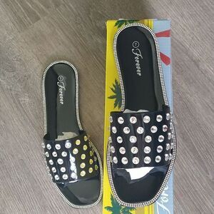 Jeweled Flat Jelly Sandals Black size 7