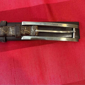 This brown leather belt is 43" long from end to buckle and the belt is signed.