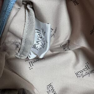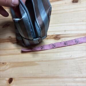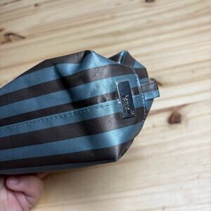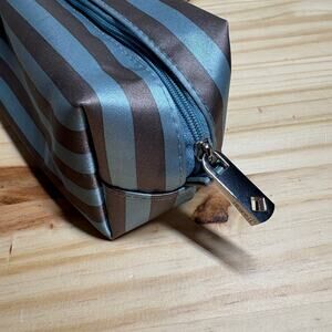 Jewell by Thirty One Uptown Mini Pouch Makeup Blue Black Stripe Zipper Shiny