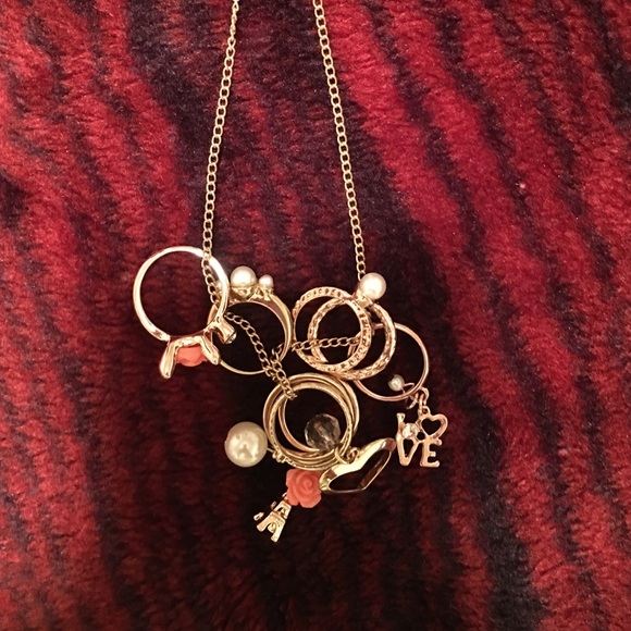 Long pink rose necklace comes with so many rings in it brand new goes perfect with cute dresses