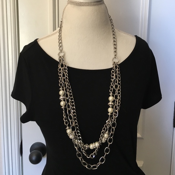 Antique imitation rhodium plated, faux pearls, crystals. Removable strands for lots of versatility!