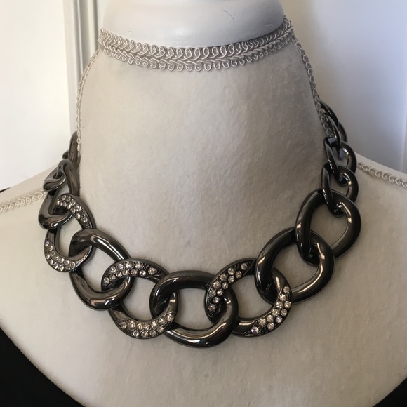 Hematite plated necklace with crystals. Length is 16" with a 4-inch extender.