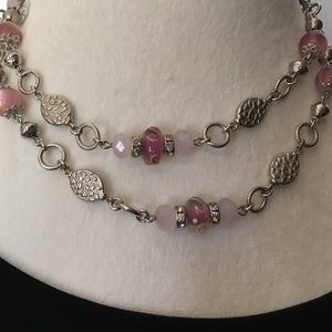 Glass and beads on antique silver chain 36" long with a 4-inch extender. Wear long or doubled.