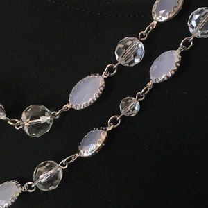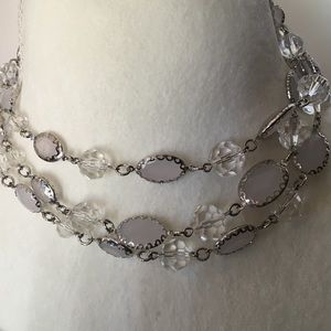 Crystals and frosty beads complement this beautiful and versatile necklace in silver plate. 60" long so it can be doubled, tripled or worn as a Y necklace.