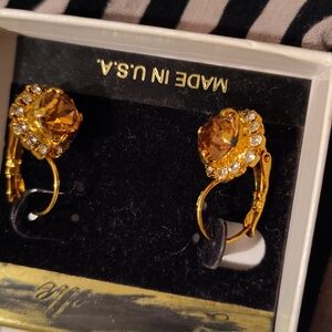 Gold tone yellow stones clear stones no marks