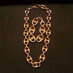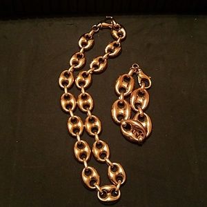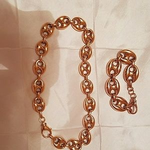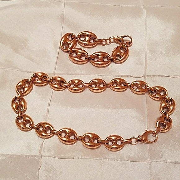 QVC BRONZO ITALIA HIGH POLISHED STATUS LINK! BEAUTIFUL SET MADE IN ITALY! NICKEL FREE AND TARNISH RESISTANT! ENJOY THE GORGEOUS GLEAM OF THESE ROSE COLORED BRONZE PIECES. 18" NECKLACE & 8" BRACELET THE INTERLOCKING STATUS LINK IS A DESIGN THAT UPGRADES ANY OUTFIT! FROM THE BRONZO ITALIA (R) JEWELRY COLLECTION.