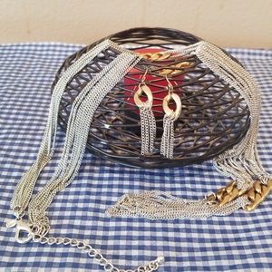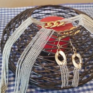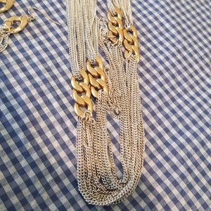 Matching set - necklace and earrings, gold links w/silver chain. Necklace is 20in. long. Worn maybe a handful of times. In good condition.