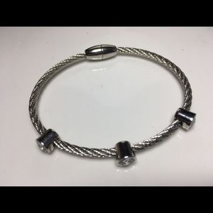 Metal bracelet with crystals and magnetic clasp.