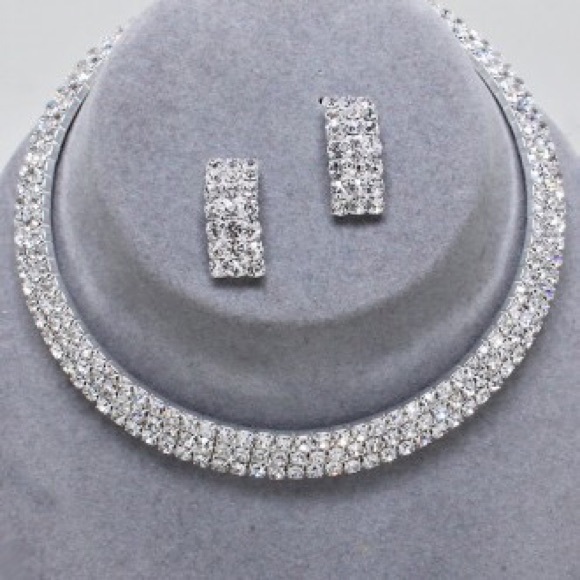 Gorgeous diamond necklace set. Great for any occasion prom, wedding, church, evening dinner, or work.