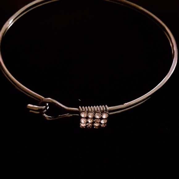 Brass bracelet with white rhinestones. It fasten on top beside rhinestones