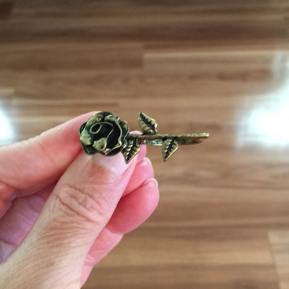 Rose stemmed Antique brass 2 finger ring