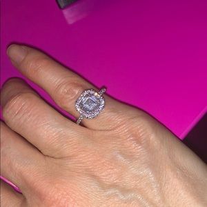 Silver engagement ring with white sapphire and zirconium. Size 6.