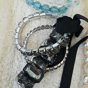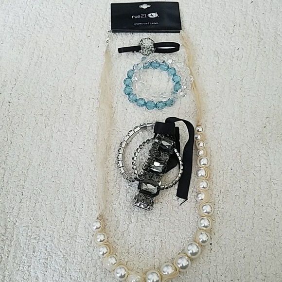 NWT pearl necklace and 6 bracelets (3 are black rhinestones) all are adjustable. Boho gypsy nomad boutique fashions stagecoach cochella vibes