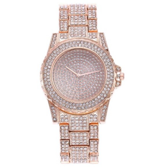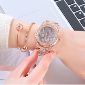 THREE COLORS AVAILABLE RHINESTONE INLAID ELEGANT SHINING FASHION STAINLESS STEEL WRIST WATCH