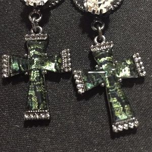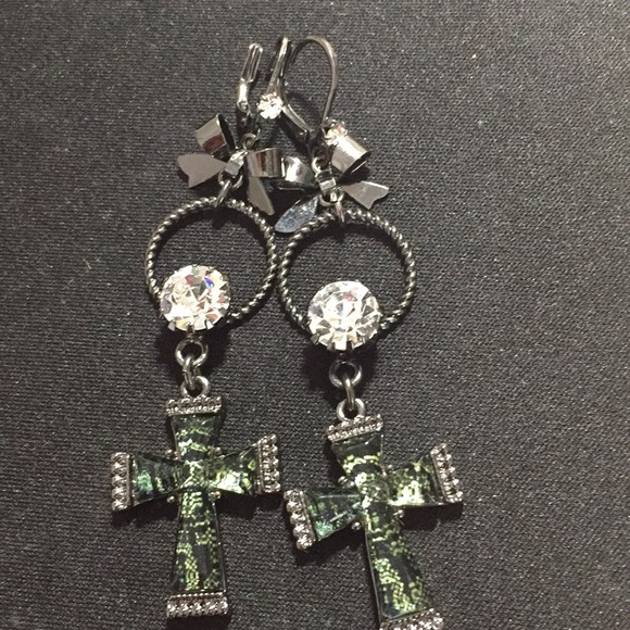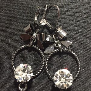 Wow. Aren’t these amazing?? There is a rhinestone and bow at the top of the earring. Then another huge rhinestone in the middle of the circle. The prize at the end of these earrings are this dark green cut glass. You have to see it up close to see how pretty they are.