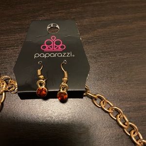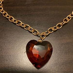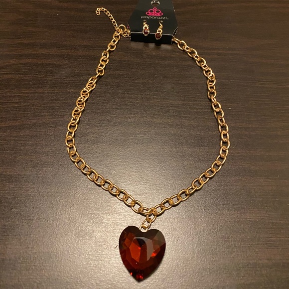 Beautiful Brown/Rust Heart Charm on a Gold chain with matching earrings