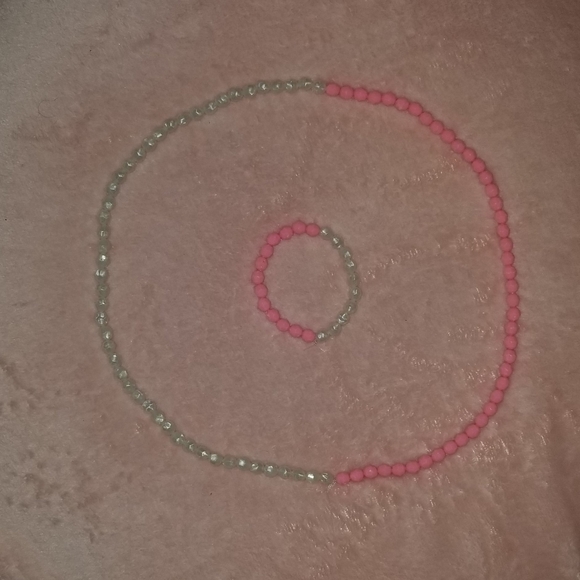 SUMMERTIME MUST HAVE! Belly chain with matching anklet! Pink & pearl white. Goes great with crop tops, swimwear and more! Pick this one or CUSTOMIZE YOUR OWN!
