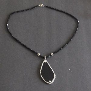 Swarovski beads with a quartz pendant surrounded by hemotite
