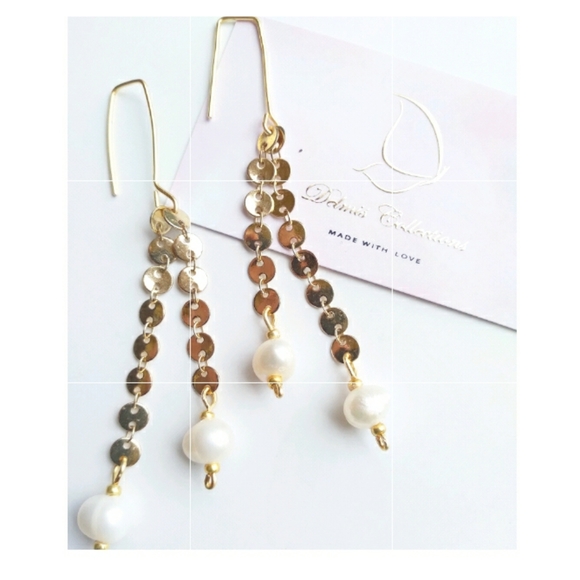 Long earrings gold layered 18k with pearls