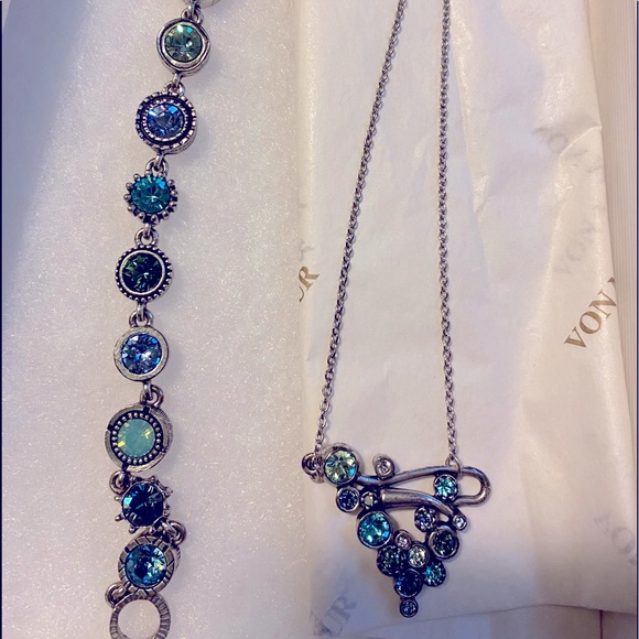 2pc Green and blue Gem jewelry set. Necklace & bracelet.