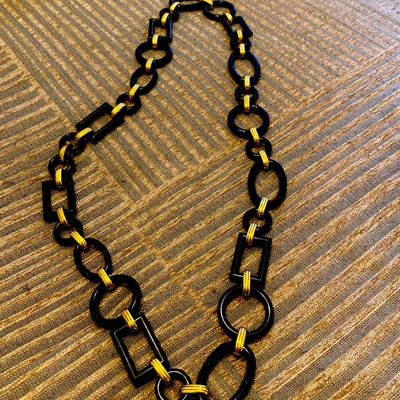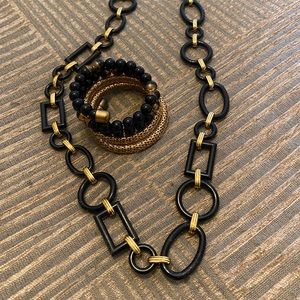 Black necklace and a bracelet. Worn once the necklace, but few times the bracelet. It has some tarnish spots on the gold part