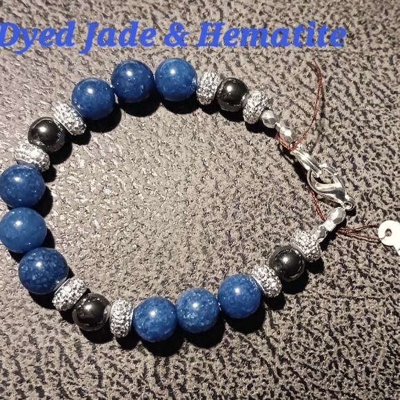 Lovely custom made natural stone 8mm dyed jade beaded bracelets...7 1/2 " long.