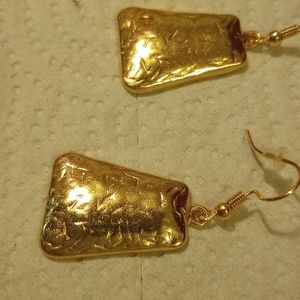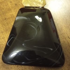 Marbled blacks Acrylic Trapezoid Pendant with Gold metal cable Chain necklace with earrings set The pendant is 4.75 inches long and 2.75 wide. Beautiful elegant set ont that special night out.